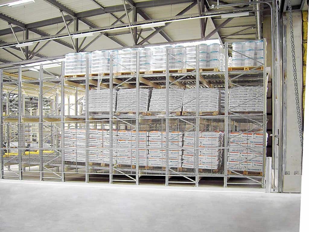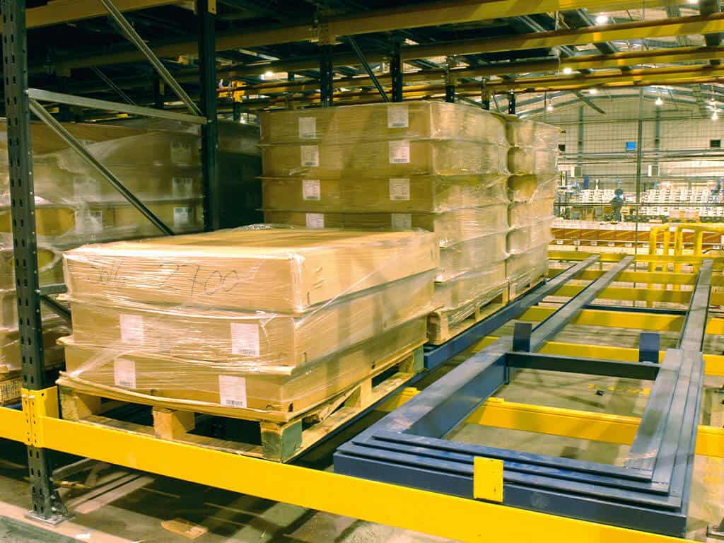 Pallets can be stacked four or five deep and usually up to five pallets high, effectively utilising space and allowing easy organisation of stock.
