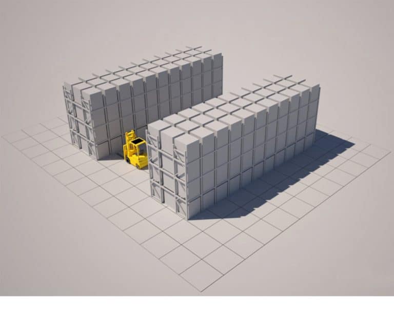 Push back is particularly suitable for bulk goods as individual pallets further back in the rack cannot be accessed directly – but when fully utilised extremely high occupancy and efficiency rates can be achieved compared to drive-in racking or block-stackin